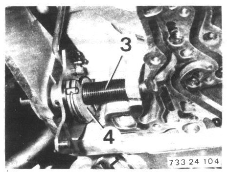 - Pull out selector shaft far enough that spring (3) can be removed.