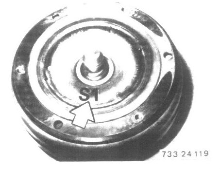 - Pull torque converter out of primary pump carefully with Special Tool 24 4 000.