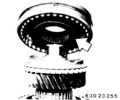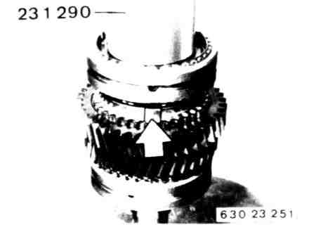 NOTE: Since 5.85: Stepped end of operating sleeve must face the first gear wheel.