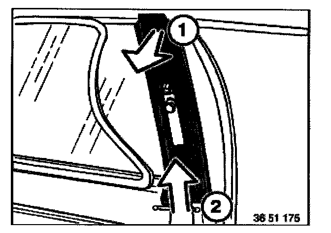 Unclip B-pillar trim panel at top (1) and lift it out upwards (2).