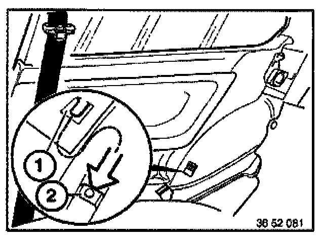 - Unclip (1) the backrest side section and remove in upwards direction (2).