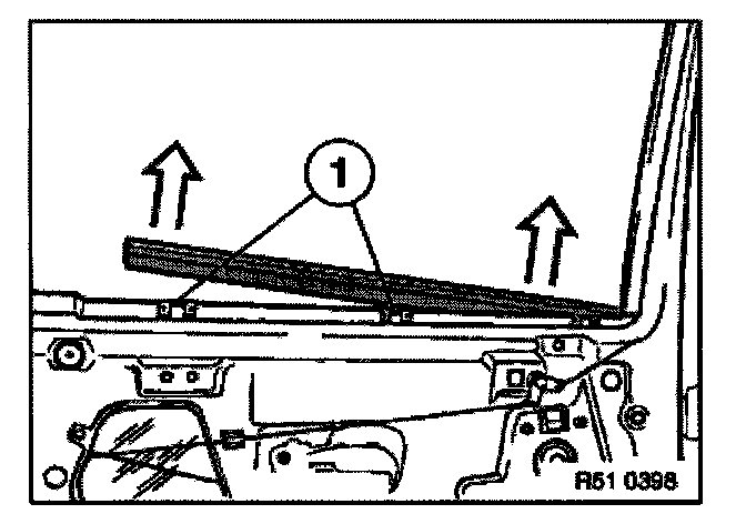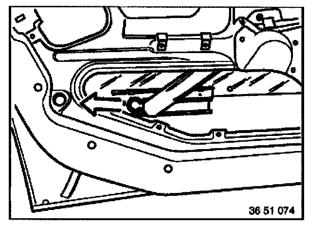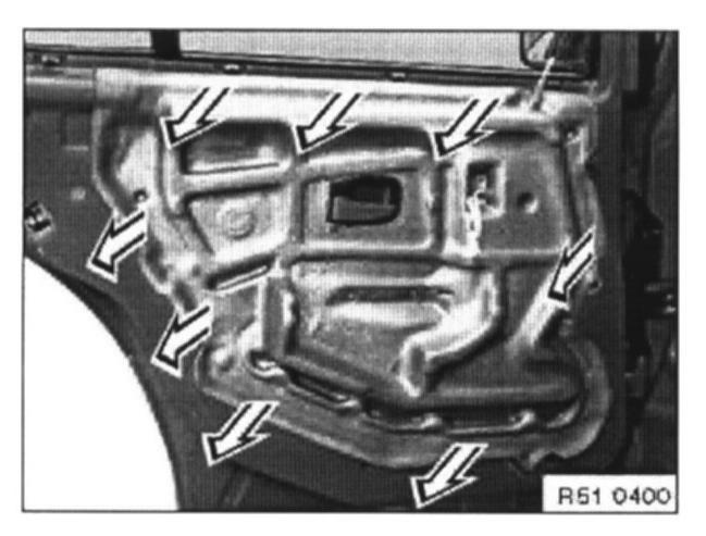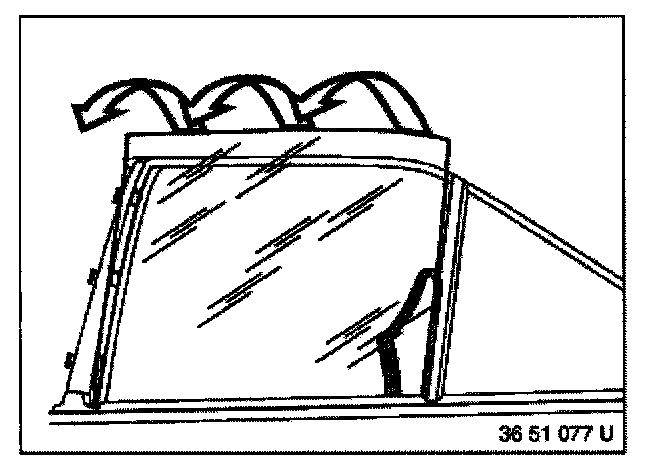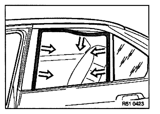 If necessary, cement butylene thread (1) (Sourcing Reference BMW Parts Service) to detached areas.