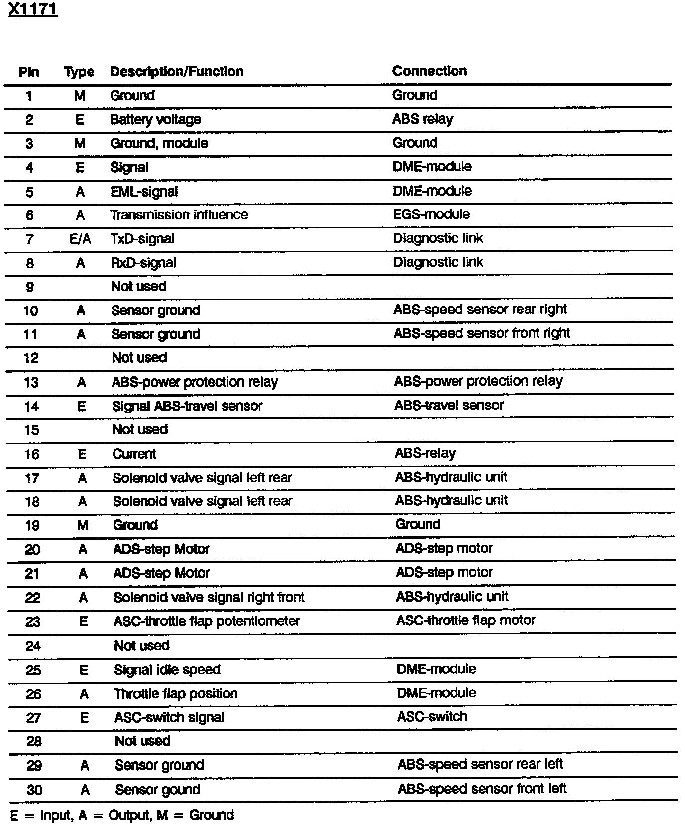 Slip Control (ABS/ASC): Pin Assignments: