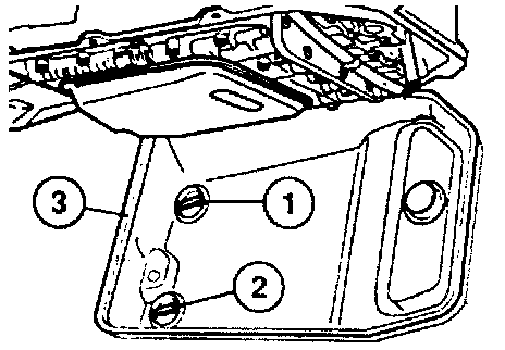 - If necessary fill transmission through filler bore (1) underneath the sump until it overflows.