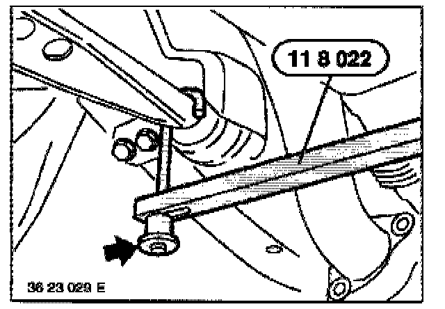 - Attach special tool 11 8 022 to left and right control arms.