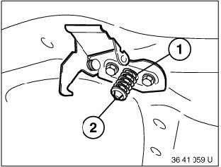 CAUTION: If detent buffer is unscrewed too far, there is a danger that the hood lid will be damaged by contact surfaces of detent buffer!