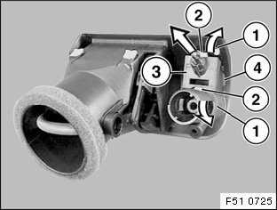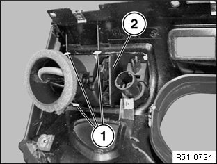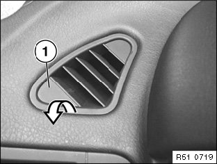 Pull left/right air vent (1) downwards (with feeler gauge) and remove.