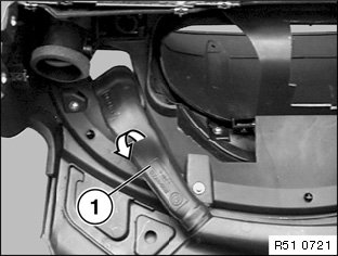 Pull left/right air guide (1) forwards to remove.