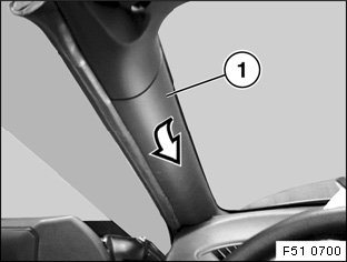 Pull trim (1) inwards to unclip; then pull obliquely upwards to remove.