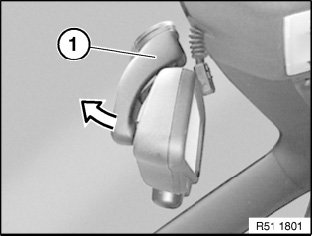 Do not pull off rearview mirror (1) from windscreen against direction of travel and or snap out by turning.
