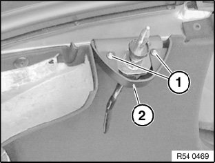 Release screws (1) and remove cover (2). Remove panel, rear window frame, bottom.