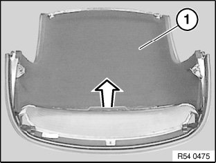 Raise molded roof lining (1) at rear window and slide towards front.