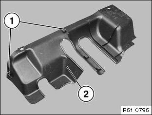 Turn rotary clips (1) through 90° and remove. Pull trim (2) downwards/backwards to remove.