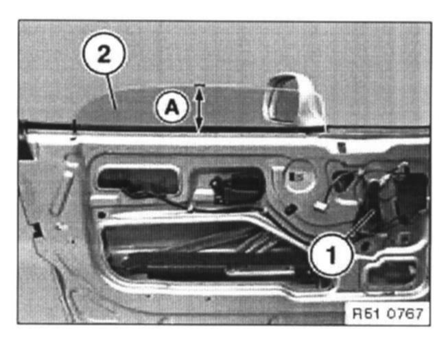 - Fit window crank (1) and close door window (2) down to dimension (A).