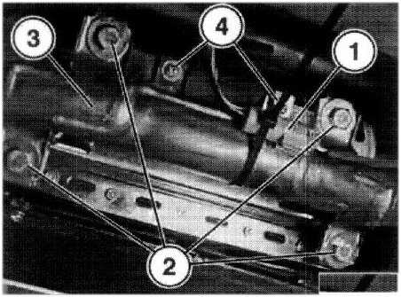 Unfasten screws (2) on bracket (3) and remove airbag module