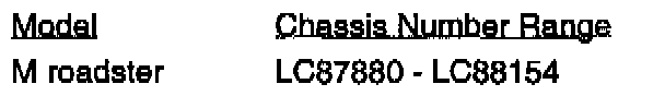 This Service Action affects M roadster vehicles produced between Aug 31, 1998, and Sept. 28, 1998.