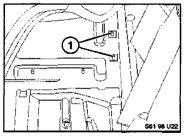 4. Lift the battery cable and check for the presence of two stud bolts (1) on the trunk floor.