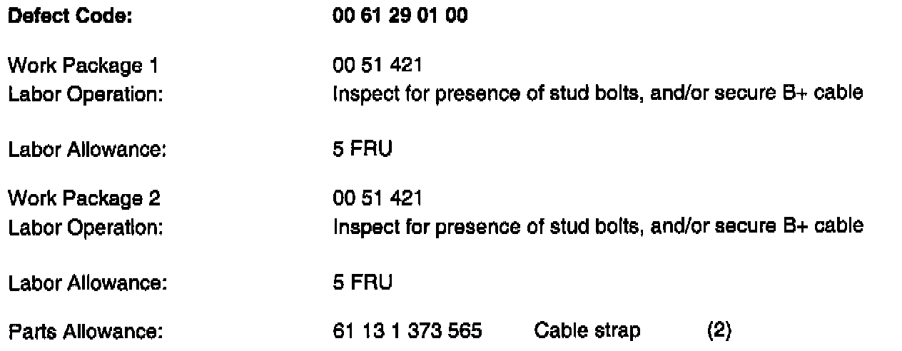 This Service Information bulletin supersedes Advance S.I. 61 11 98 dated October 1998 (faxed to all BMW centers), which should be removed and discarded from your S.I. binder.