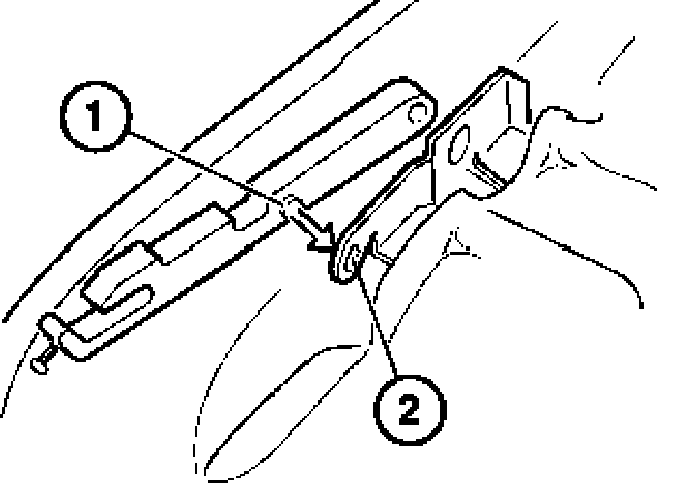 Install adjusting levers on left/right to lid of slide/tilt sun roof Retaining pin (1) must locate correctly in bore (2)
