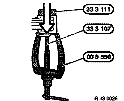 Pull out rubber mount using special tools 00 8 550/33 3 107/111.