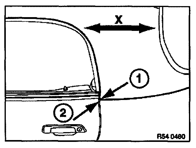 During movement in direction "X", edge of hard top (1) must be flush with edge of side panel at rear (2).