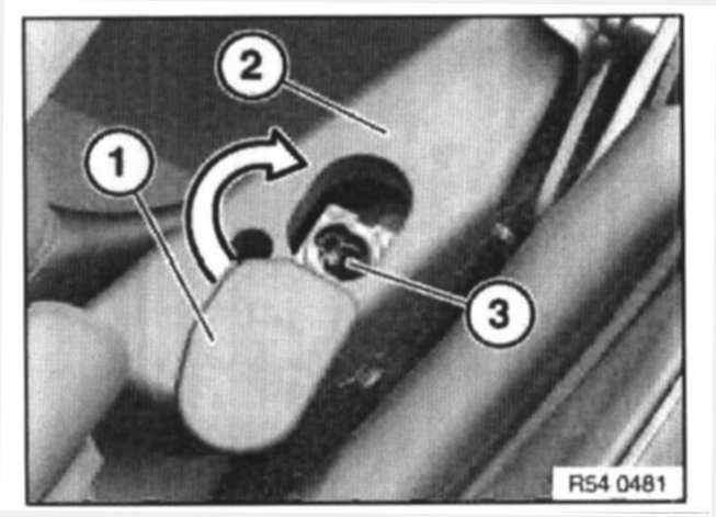Close off hard top locating point (3) with cap (1) on cover at top of B-pillar (2).