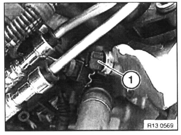 Disconnect plug connection (1). Unscrew temperature sensor.