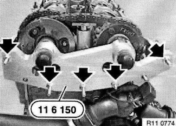 ^ The special tool 11 6 150 may only be attached "without the gasket".