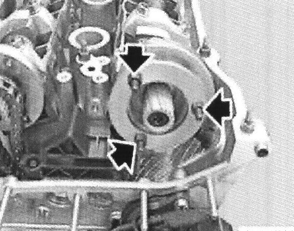 Bring screws (1) on exhaust side into contact by initially tightening( to approx. 5 Nm.