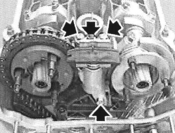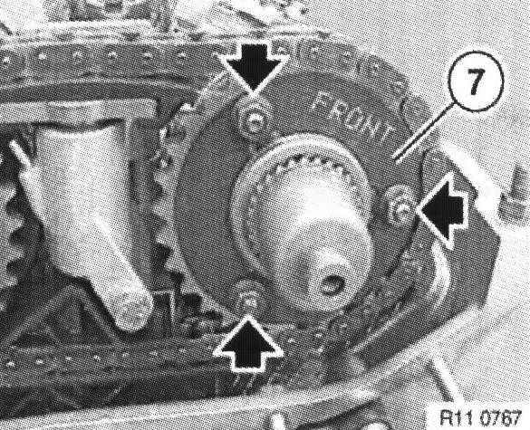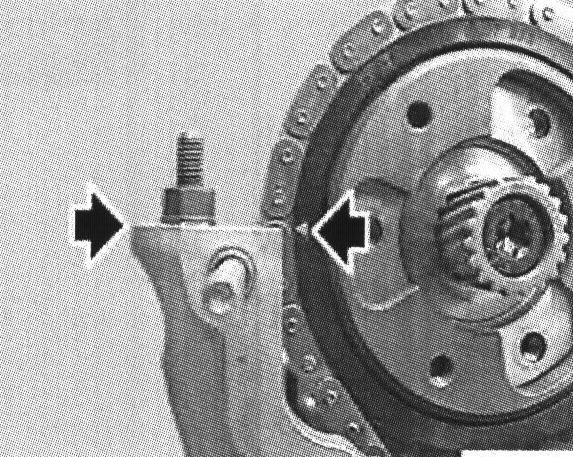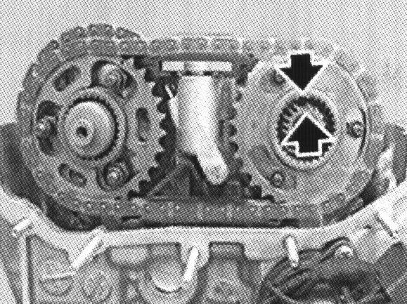 Check that arrow on chain wheel faces separating face of upper side of cylinder head, reposition chain wheel if necessary.