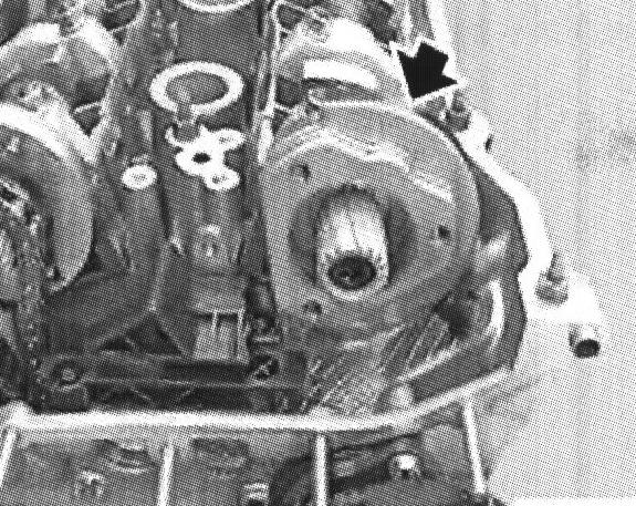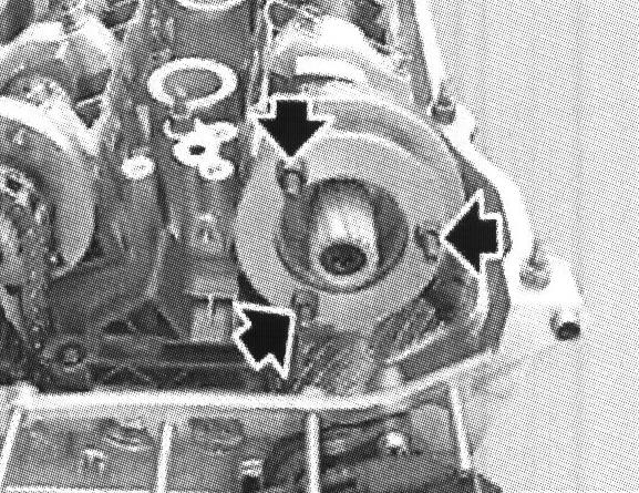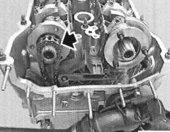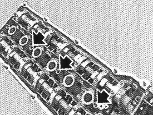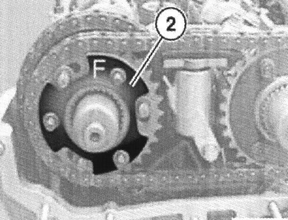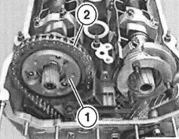 ^ Bearing cover 1 on intake camshaft is centered on hollow dowels.
