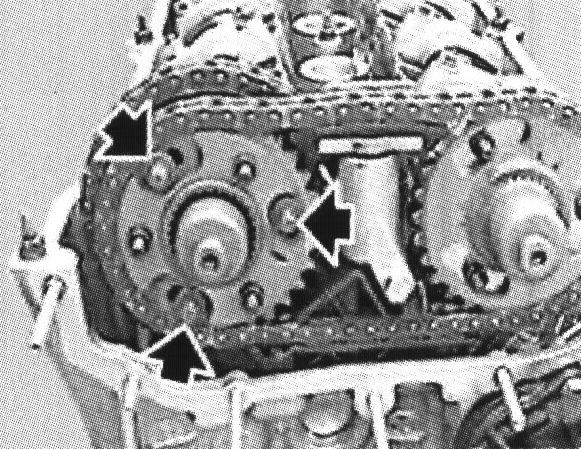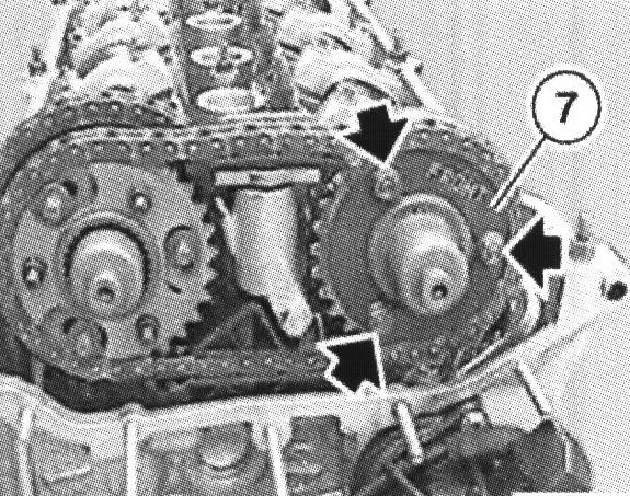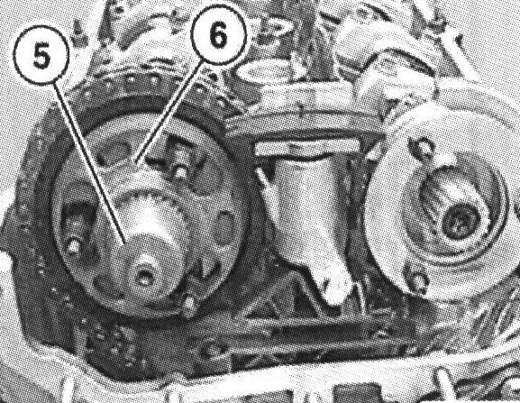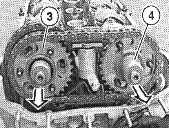 Lift off exhaust and inlet chain wheels together with chain, thrust washer (3) and toothed shaft (4).