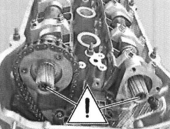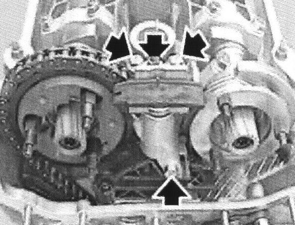 ^ To prevent damaging valves when fitting the camshafts, no pistons should be in TDC position.