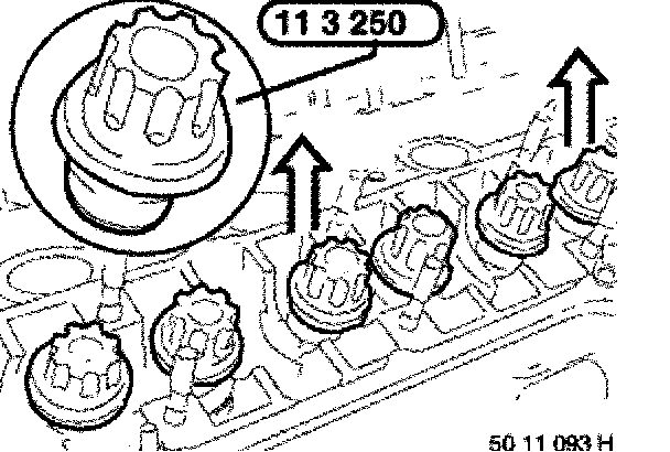 Locate bucket tappets in bearing strip with special tool 11 3 250.