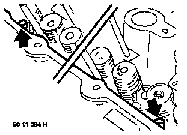 Press down secondary chain tensioner at top and lock with special tool 11 3 292.