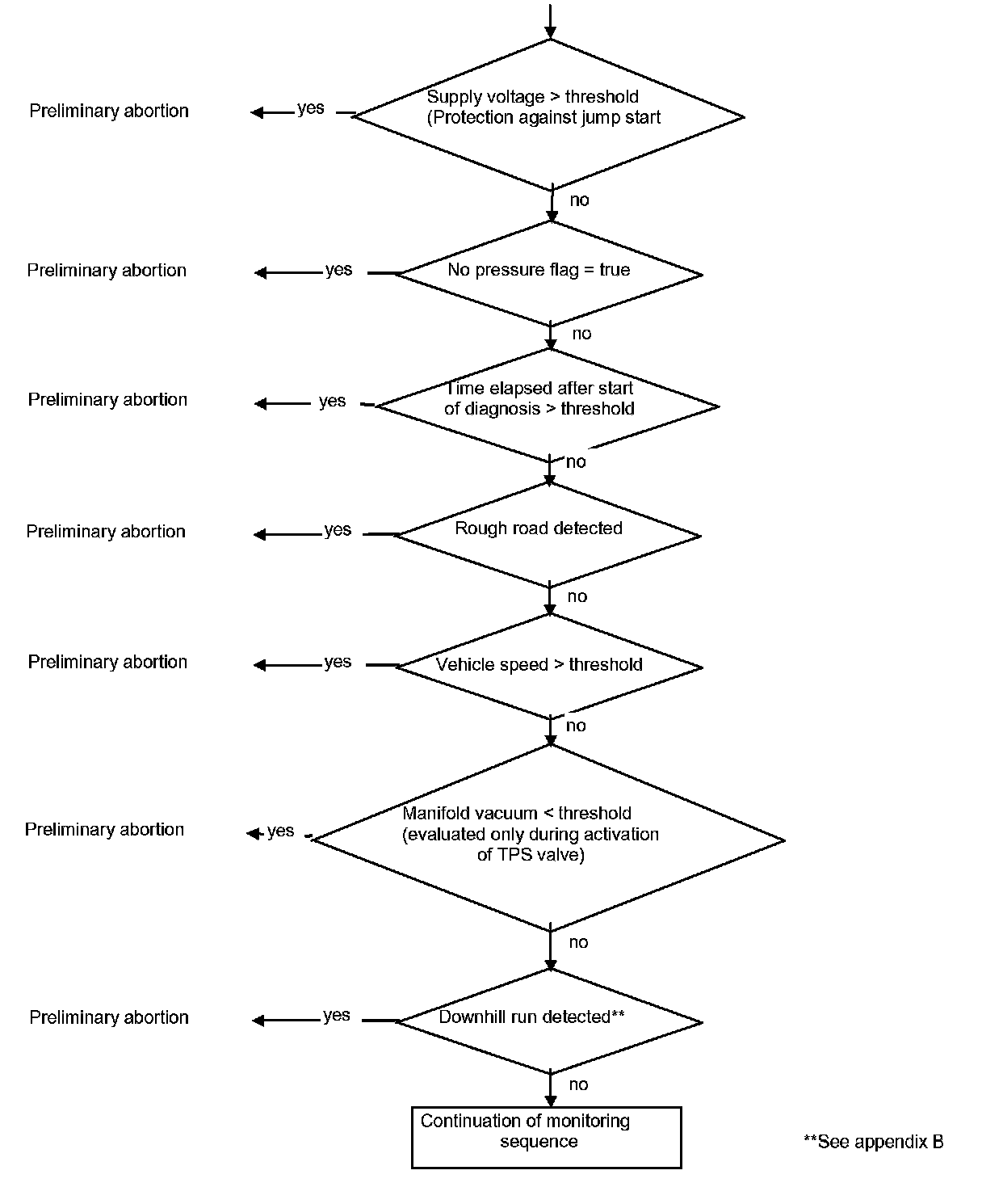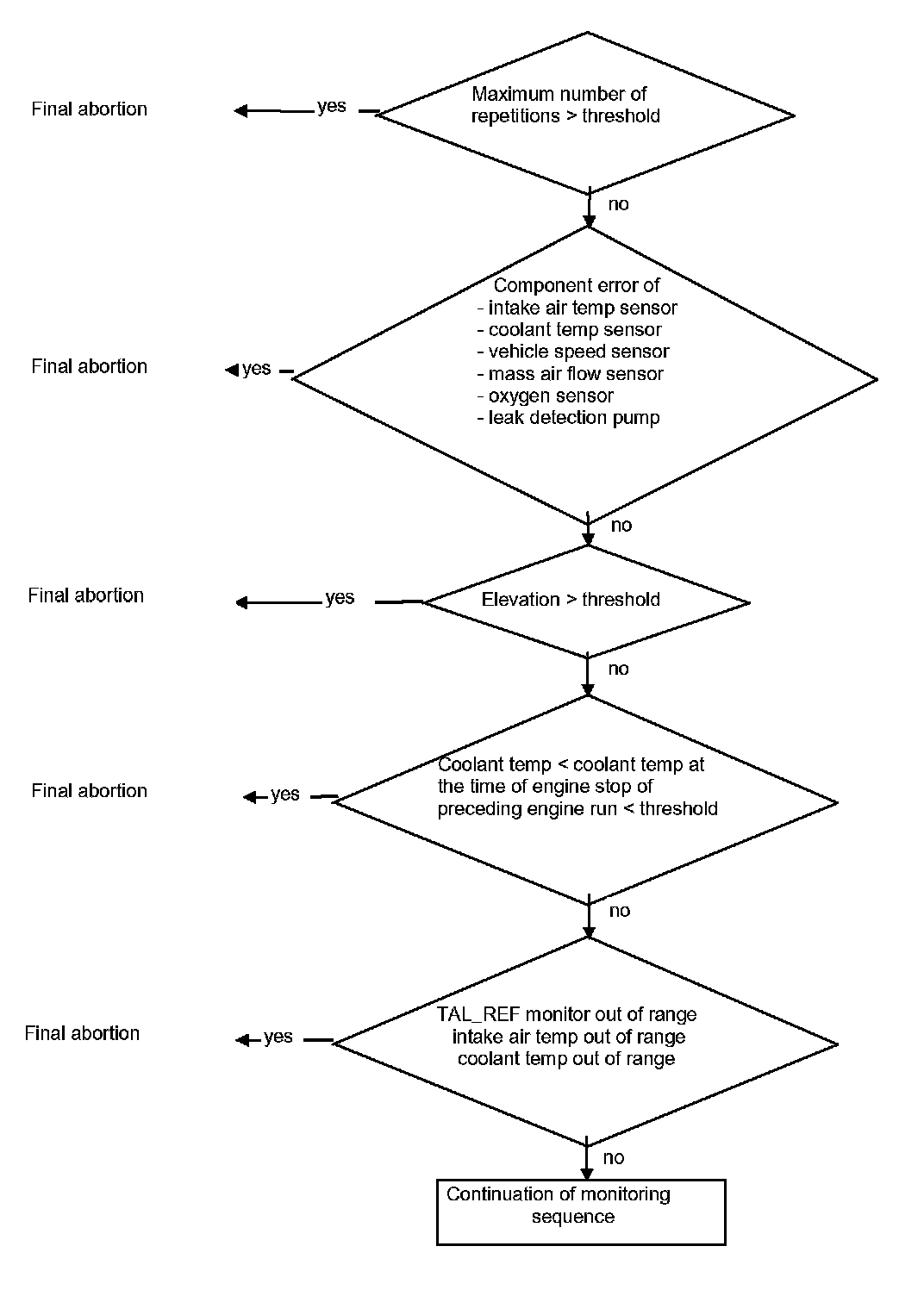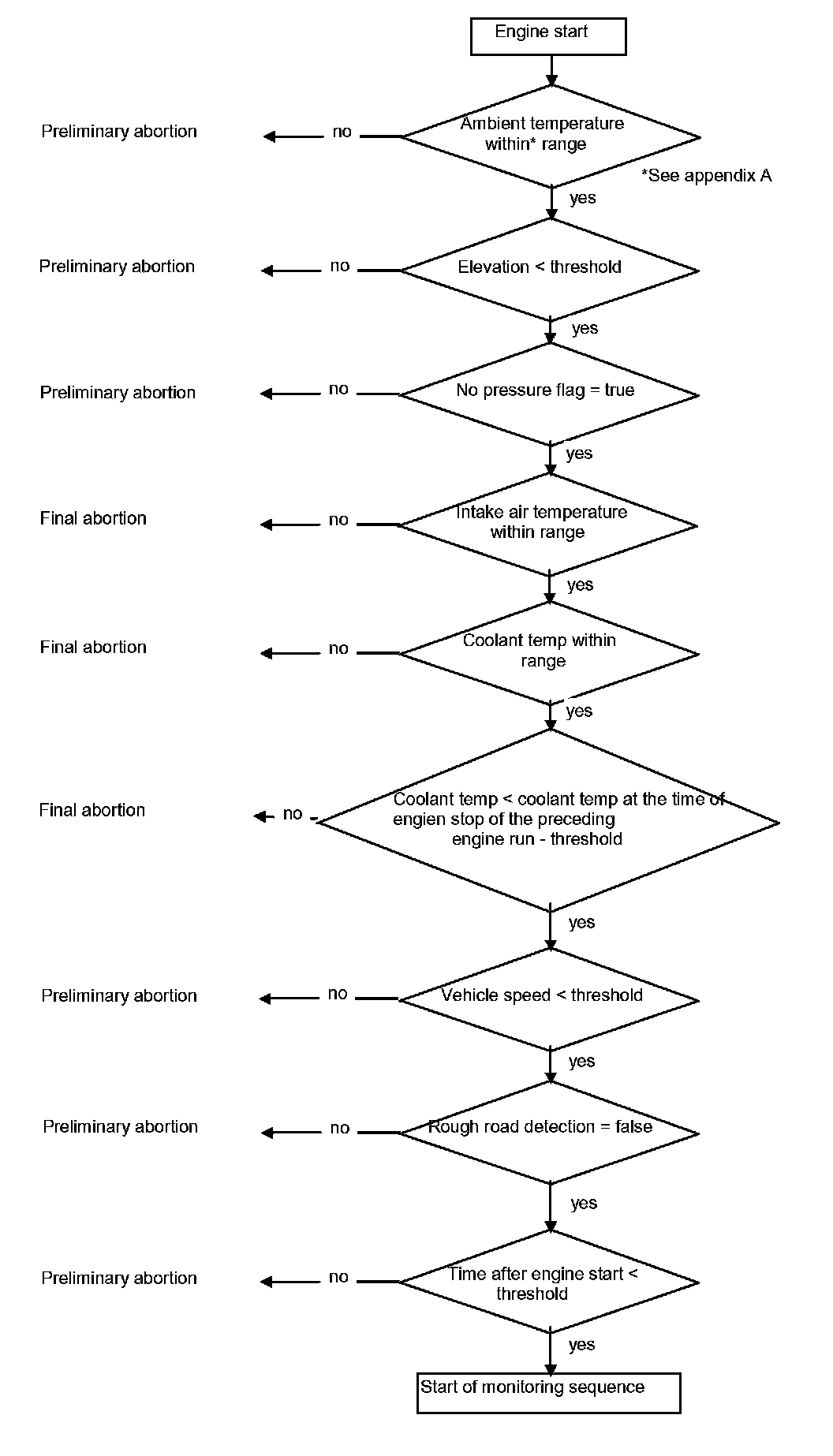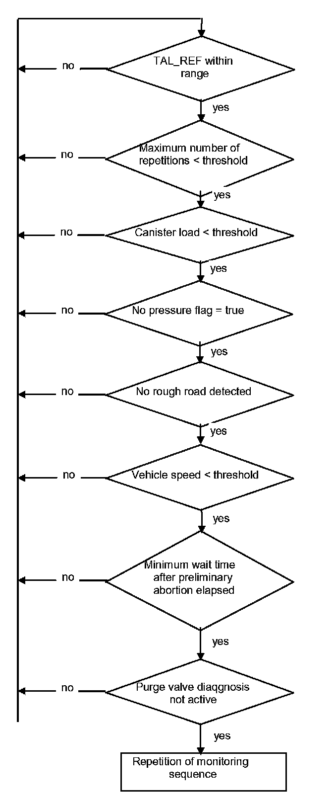 To have the maximum purge capacity (or minimal loss of purge air due to leak detection) the test normally runs after engine cold start. However under certain circumstances the test may be preliminary aborted and started again later during engine run if all conditions for the restart of the test are met.