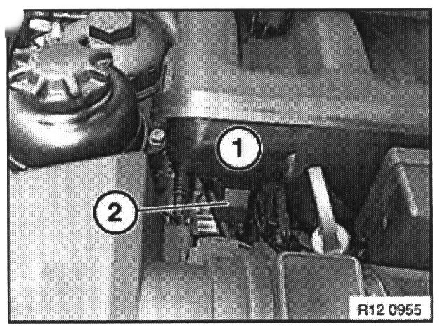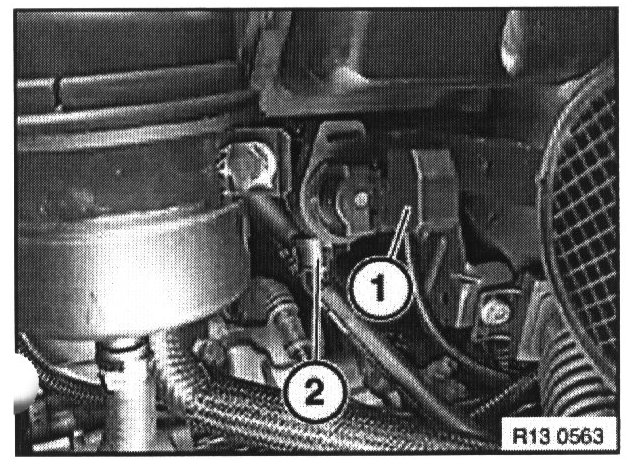 Release vent hose (2). To do so, press locking bar and detach vent hose.