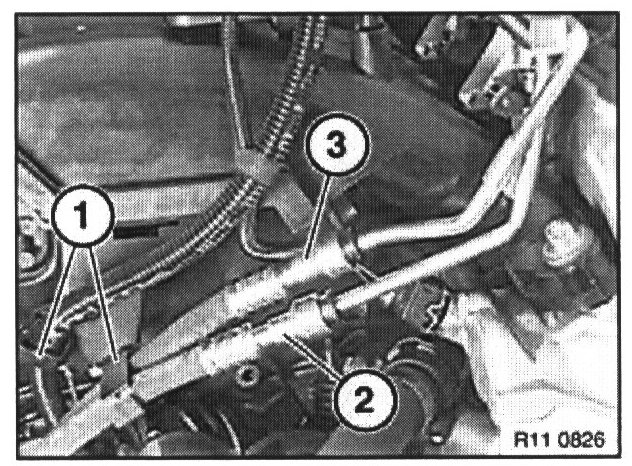Unlock fuel lines (2 and 3) at rear of cylinder head.