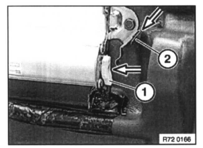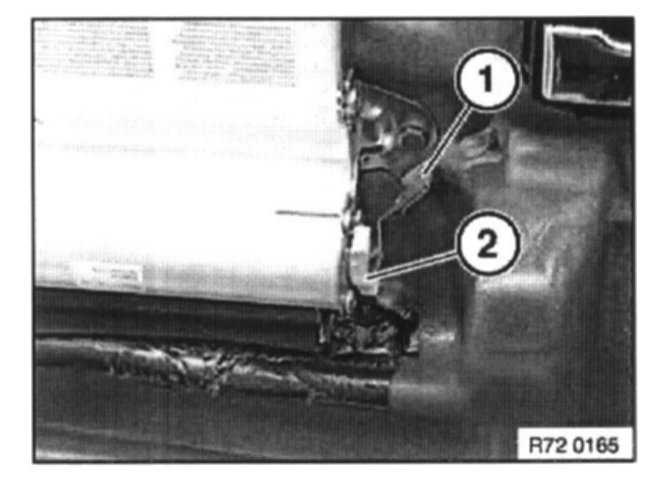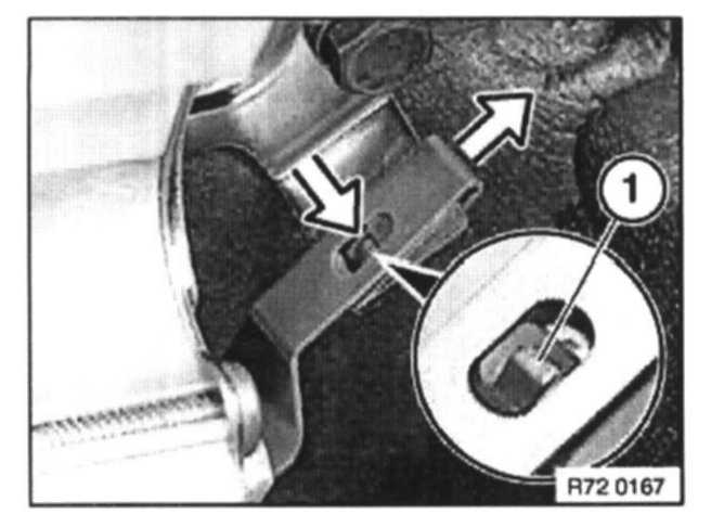 To do so, open locking clip until lug (1) can be pulled out of catch.