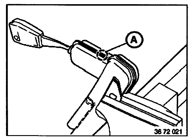 Apply a firm knock with the fin of a hammer weighing 500 g to belt-lock tightener in zone (A).