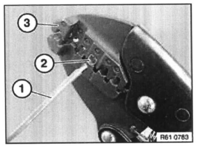 Open crimping pliers (3) and remove cable (2).