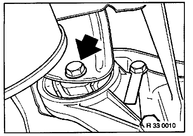 Support final drive from underneath with a transmission lifter and special tool 33 4 390.