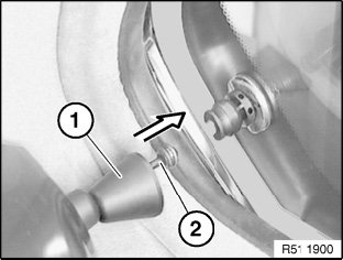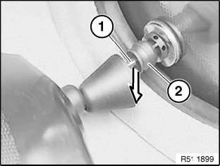 Lever out cap (1) with special tool 00 9 318 (universal wedge) towards inside.