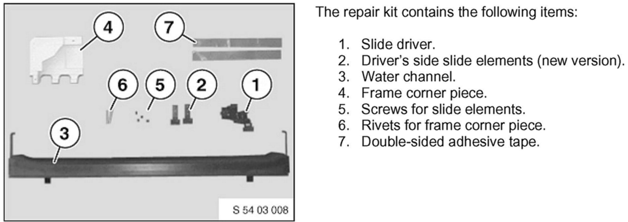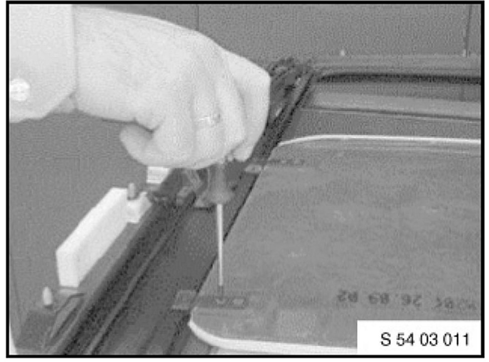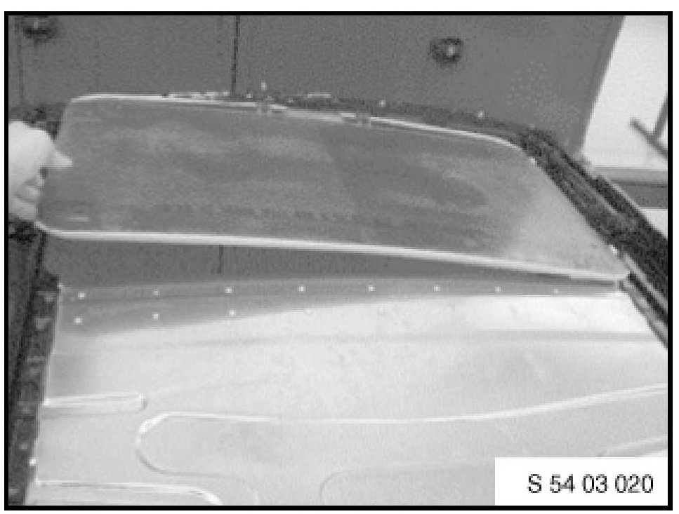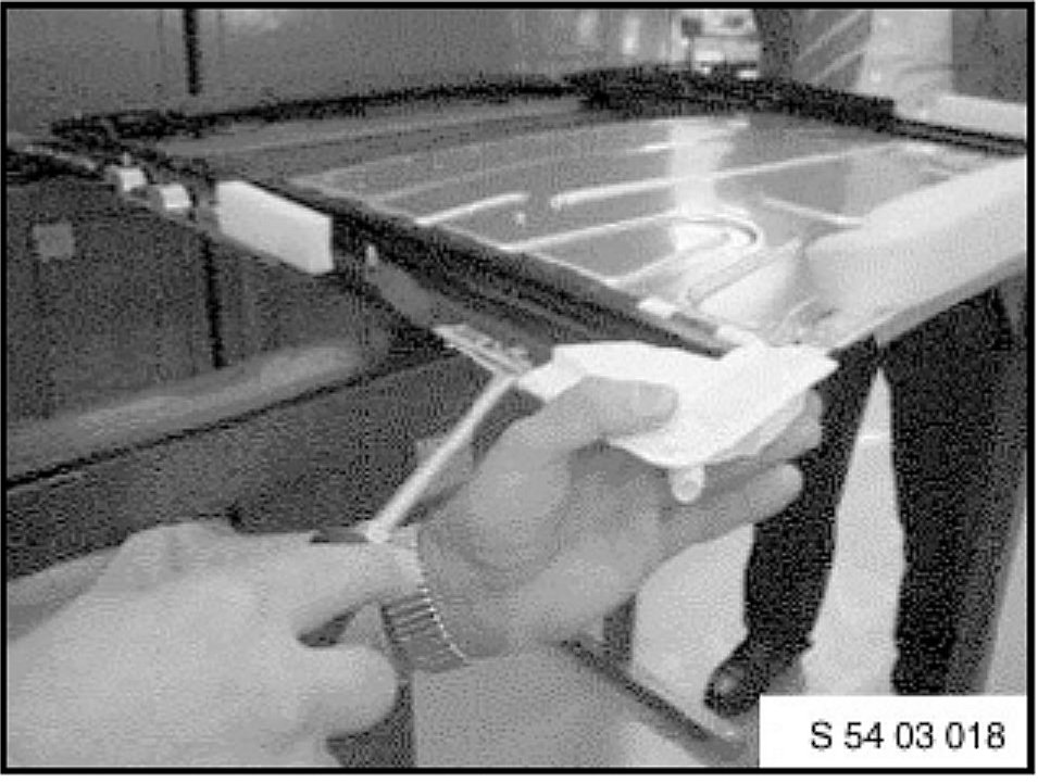 Remove the complete sunroof cassette per Repair Instructions RA 54 12 211.