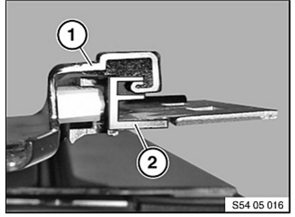 The rear driver's side slide element (1) must be fitted behind the slide driver (2).