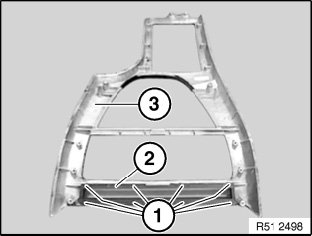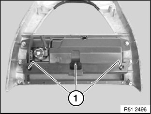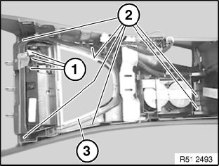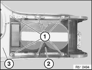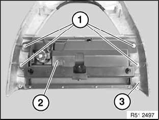 Release screws (1) and remove ashtray (2) from base (3) for center console.