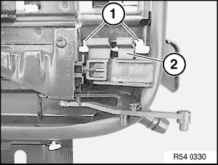 Unhook nipple (1) on drive cable from lifting lever (2) with plier tips.
