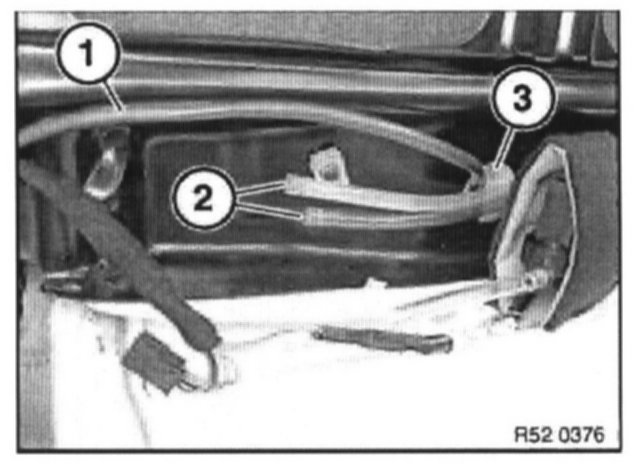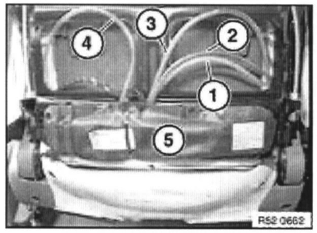 Detach hoses (1) and (2) at cutting line (heat with hot air blower if necessary).