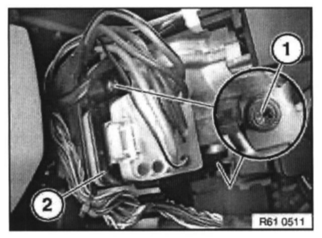 Detach ignition switch (2) in direction of arrow.