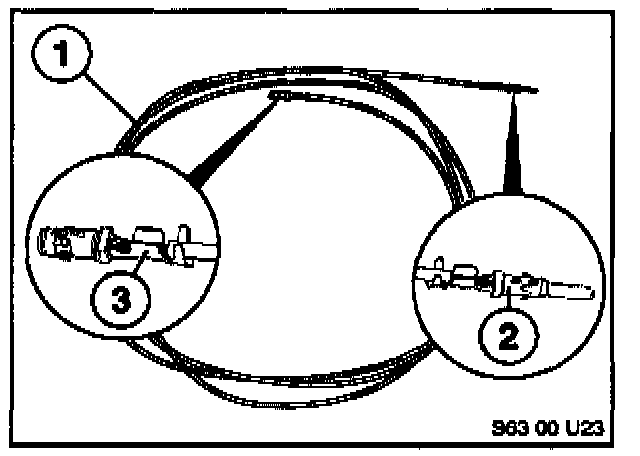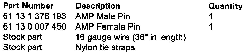 2. Cut a 16 gauge wire, 36" in length. Remove the wire insulation from ends and crimp a male pin, P/N 61 13 1 376 193 (2) to one end. Crimp a female pin, P/N 61 13 1 376 204 (3) to the other wire end.